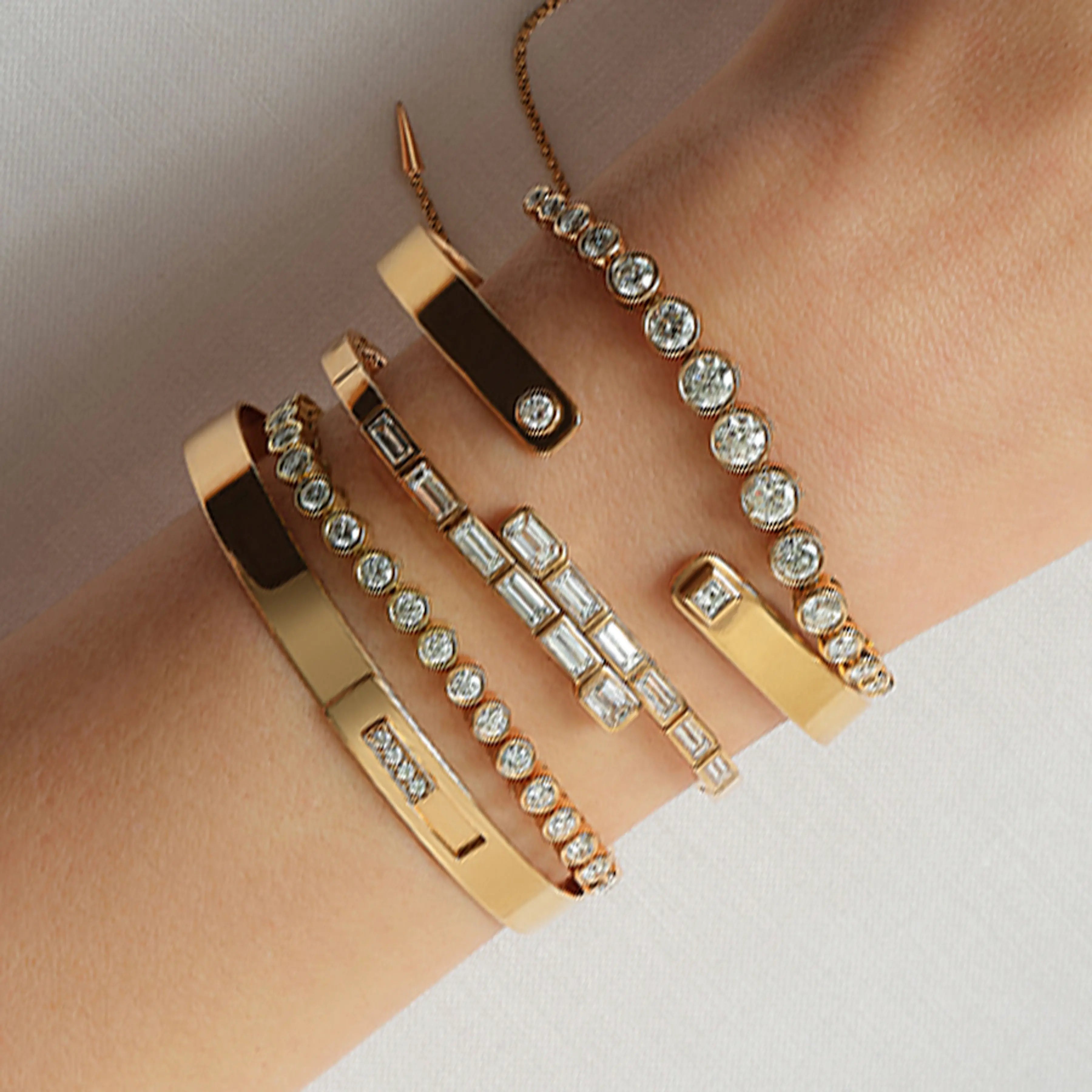 Modern Deco Elongated Diamond Baguette Bracelet - Yellow Gold, 6.5 inches