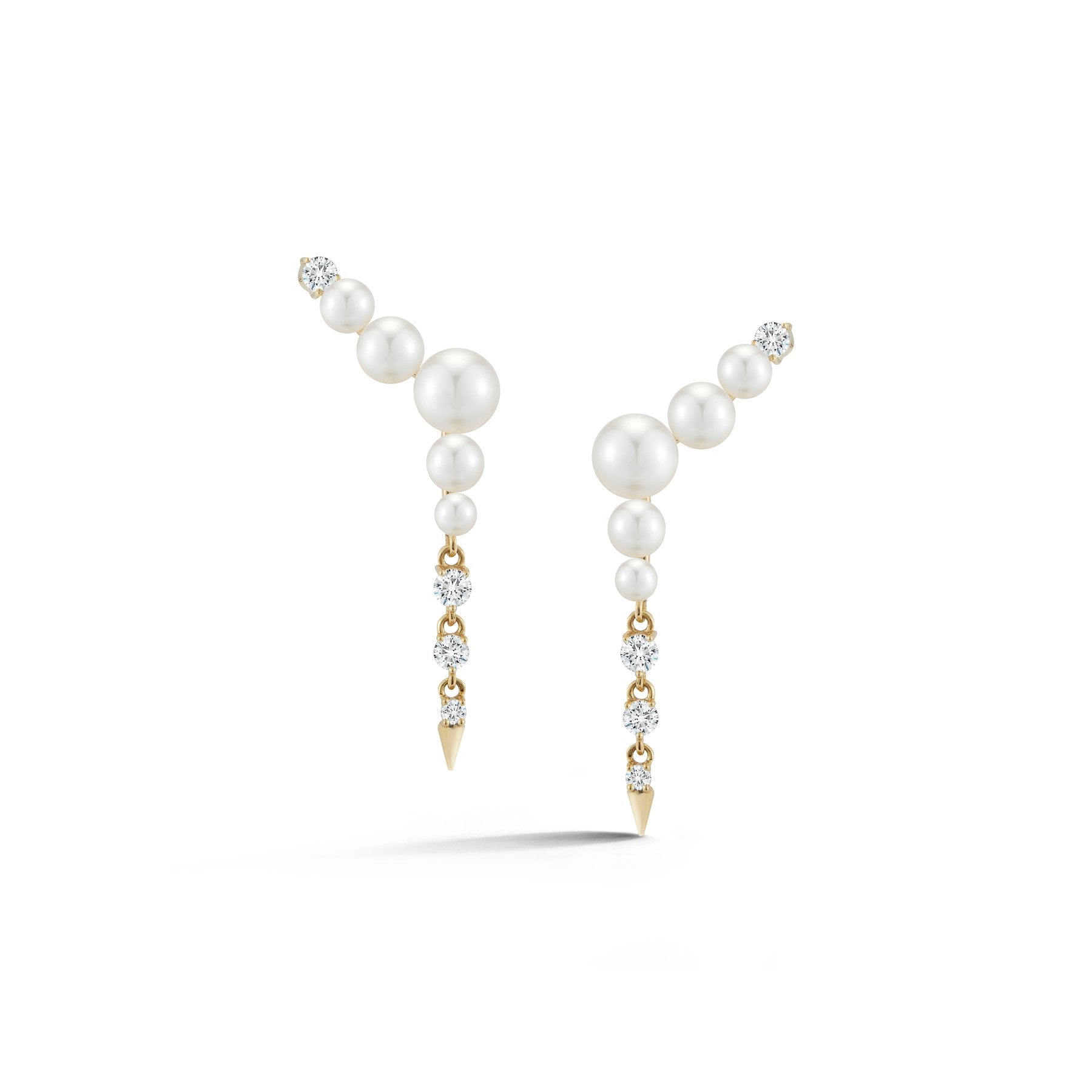Prive Pearl Ear Climber Diamond Drops - Yellow Gold
